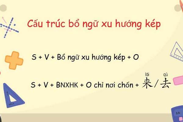 Định nghĩa: Bổ ngữ xu hướng kép dùng để biểu thị hướng đi của hành động: vừa tới gần người nói (来 – lái), vừa rời xa người nói (去 – qù).