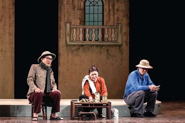他们正在排练一部新的话剧。 /Tāmen zhèngzài páiliàn yī bù xīn de huàjù./ Họ đang tập luyện một vở kịch nói mới.